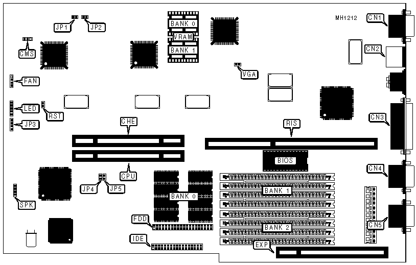 32-bit EISA riser card slot, 32-bit external cache card slot, 32-bit external CPU/NPU card slot, 32-bit external future expansion slot, bus mouse port, floppy interface, IDE , interface, parallel port, serial port (two), SVGA interface