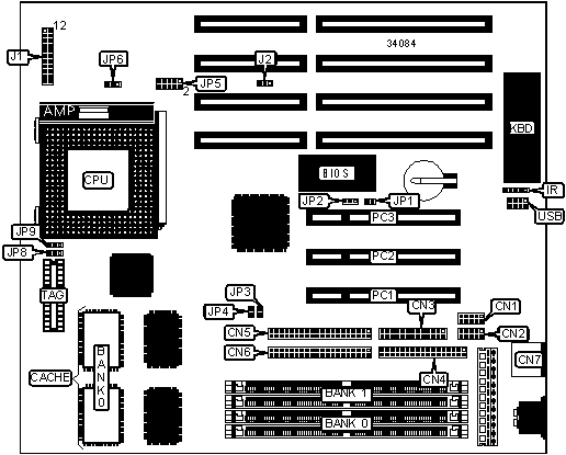Note: Board accepts EDO memory. Banks are interchangeable.