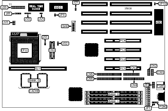 Note: Board accepts EDO memory. Banks are interchangeable.