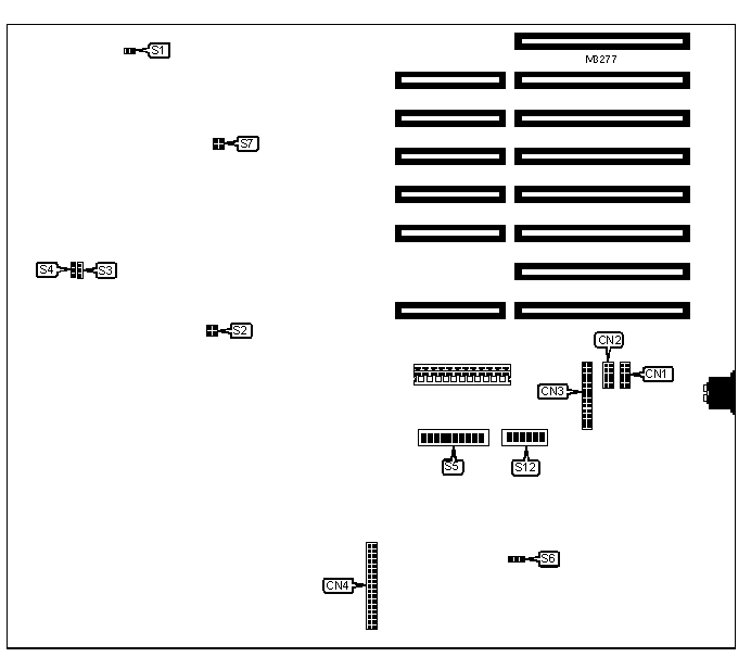 The location of pin 1 and switch 1 on all jumpers and switches is unidentified.