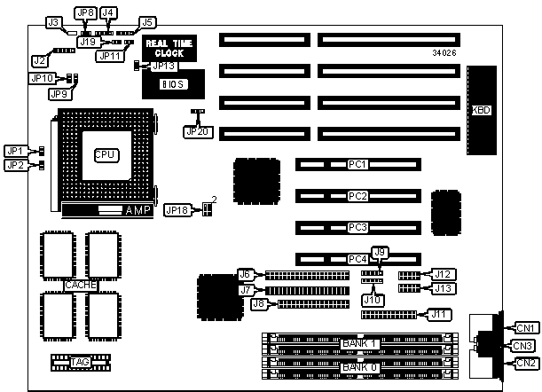 Note: Board accepts EDO memory. Board also accepts x 32 SIMMs. Banks are interchangeable.