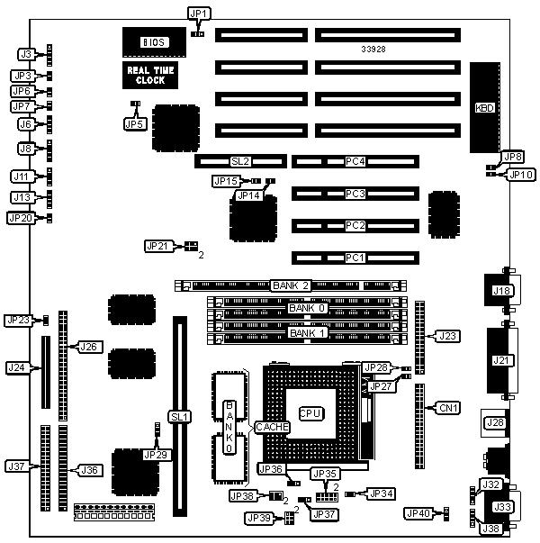 Note: Board accepts EDO memory. Board also accepts x 32 SIMMs.