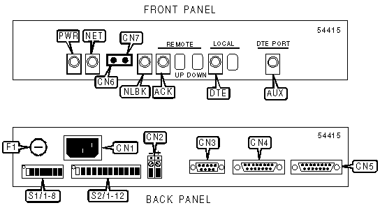 AC power connector, DC power connector, DTE port via 15-pin connector,